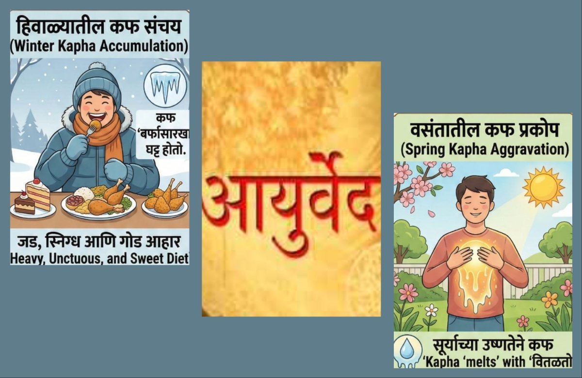 - वसंतातील कफ प्रकोप : आता जसा वसंत ऋतू सुरू होतो आणि सूर्याची उष्णता वाढते, तसा हा हिवाळ्यात गोठलेला कफ ‘वितळू’ लागतो.